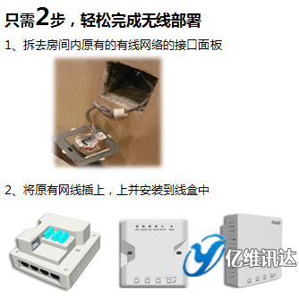 銳捷墻面式 AP,86面板盒大小,只需要替換掉原有的網絡接口面板,不打洞、不施工,不需要停止營業(yè)。
