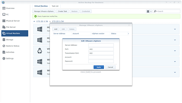 只需將數(shù)據(jù)從物理服務(wù)器遷移到虛擬平臺(如 Synology VMM 和 VMware vSphere),即可應(yīng)對意外中斷或作為升級測試環(huán)境。